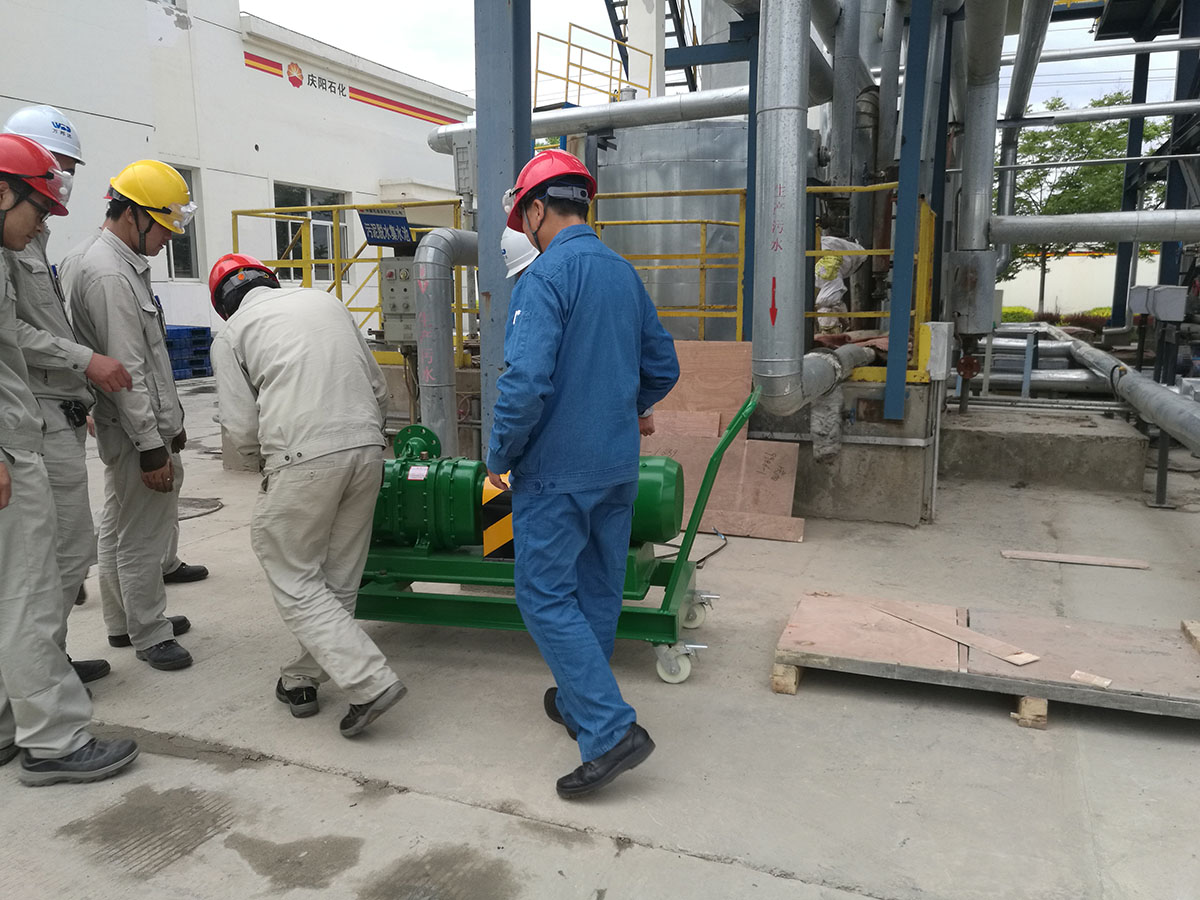 中海油泰州公司,中石油慶陽石化分公司等中石油,中海油,中石化的客戶群體使用我公司搭載凸輪轉子泵的手推式移動泵。