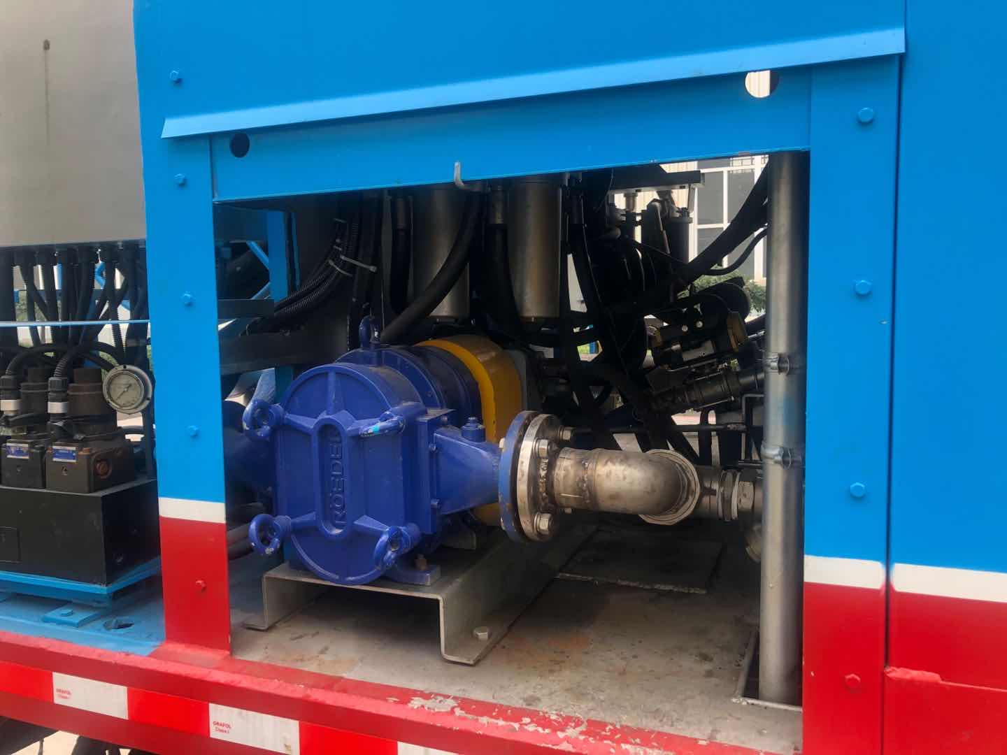 山西某特種汽車企業采用羅德轉子泵裝載到特種卡車中,用于在12bar公斤的出口壓力下,輸送PH值為4-5的硝酸銨溶液,用于礦場爆破裝置的原料輸送,解決了齒輪泵漏液的問題,采用液壓馬達驅動,合理利用車輛的空間。