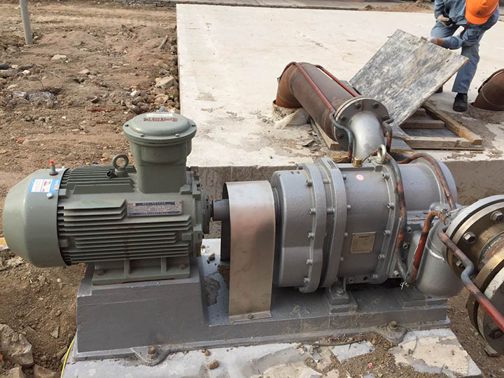 一個煉化廠設計了2臺事故水提升泵。要求當事故發生時,來自聯合裝置的事故及排水通過裝置內雨水明溝,自流排入事故排水緩沖池,加壓到0.5MPa后,由管道送入2.2KW外的事故水存儲管儲存。需要事故水泵具有大流量、無堵塞和強自吸能力,羅德凸輪轉子泵的性能完全滿足上述參數,很完美的勝任了該工作。