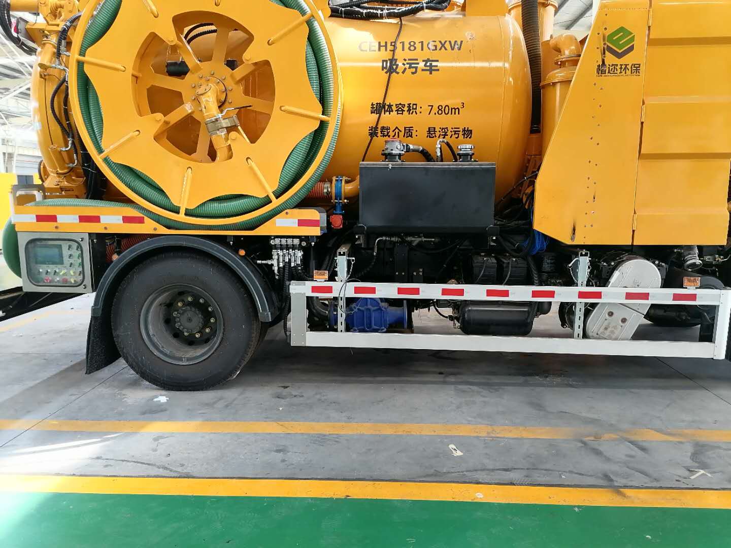 凸輪轉子泵具有8.7米的自吸能力,無需引液灌泵,可以氣液混輸,不斷流,無脈動,吸污車的安裝位置受限,采用液壓馬達驅動,充分利用空間。